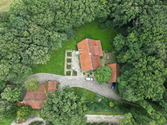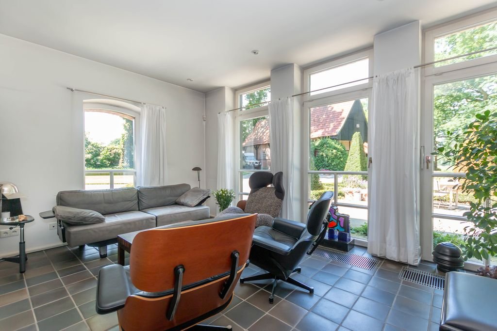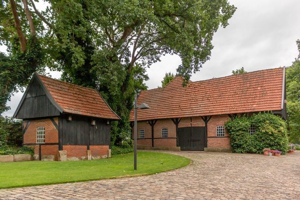 Das Landhaus sowie das separate Gästehaus liegen an einer ruhigen, von Natur geprägten Straße in der Grafschaft Bentheim, nur wenige Kilometer vom Zentrum Nordhorns entfernt. Die Lage vereint Ruhe mit guter Anbindung und bietet ein einzigartiges Wohngefühl.