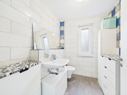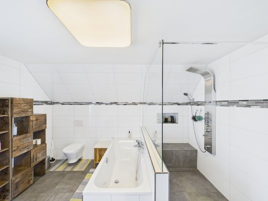 Ein weiteres, besonderes Highlight ist das riesige Tageslichtbadezimmer, das mit einer Dusche und einer Badewanne ausgestattet ist und höchsten Komfort bietet.