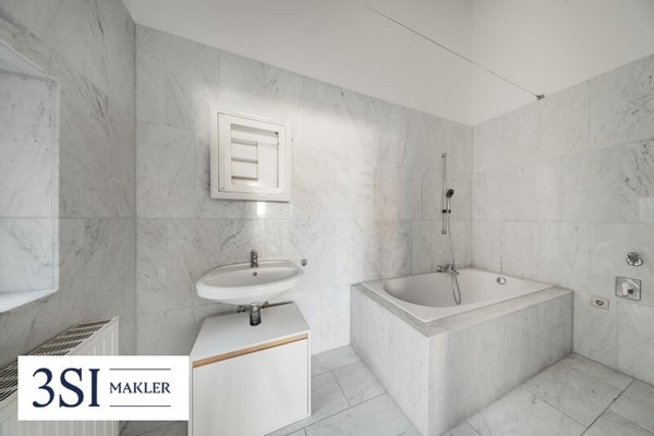 - Badezimmer mit Badewanne, Waschbecken und Waschmaschinenanschluss