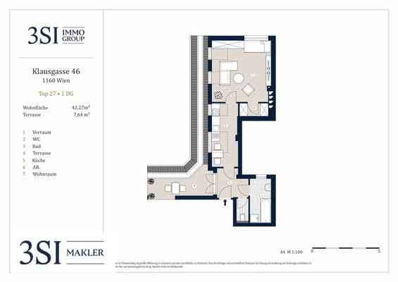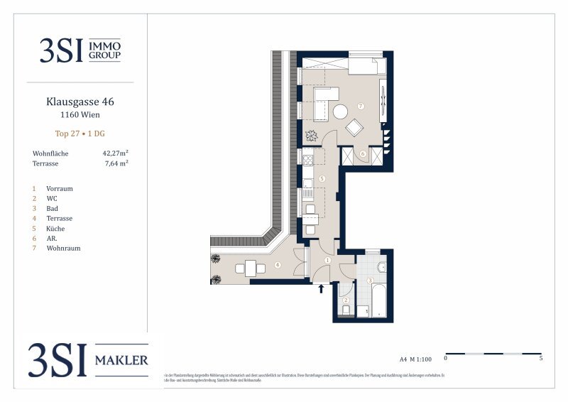Klausgasse 46: Helle 1,5-Zimmer-Dachgeschoßwohnung mit hofseitiger Terrasse