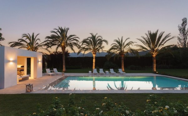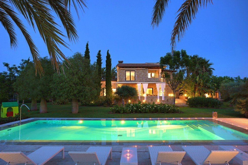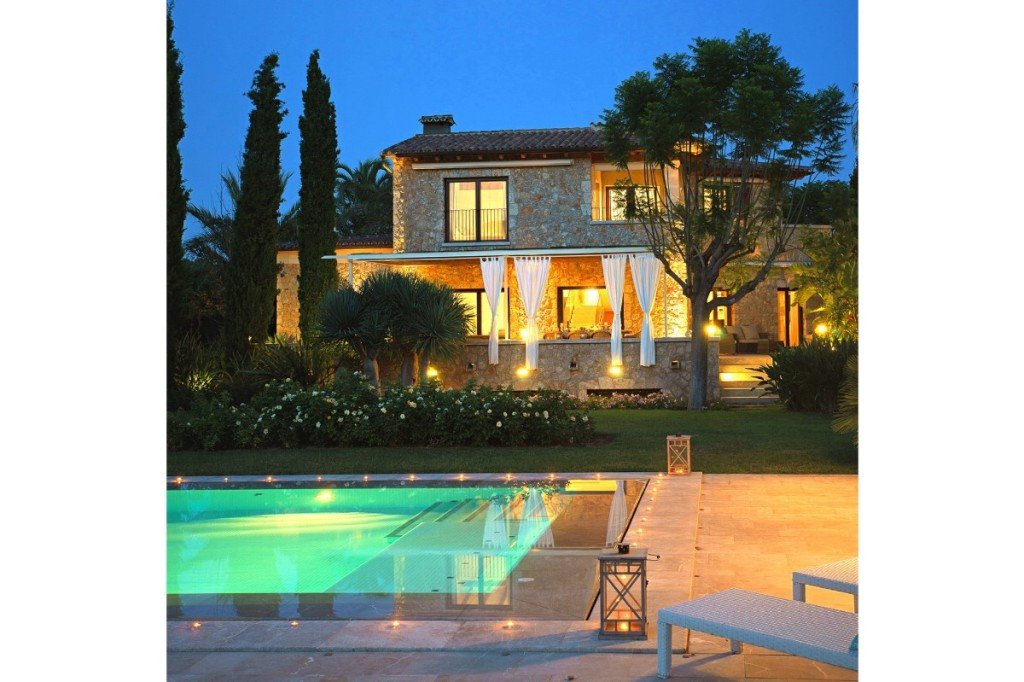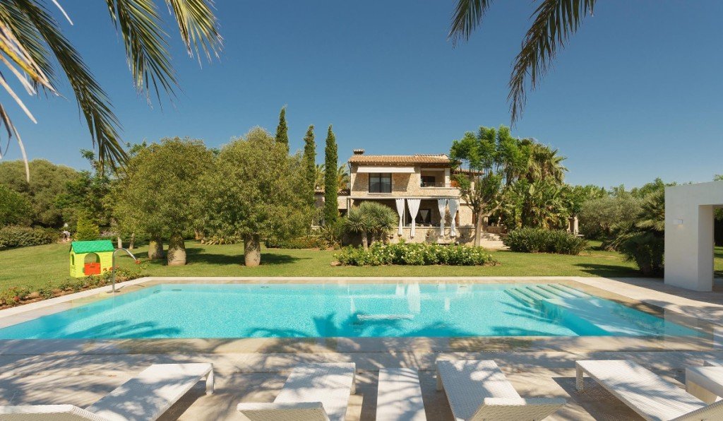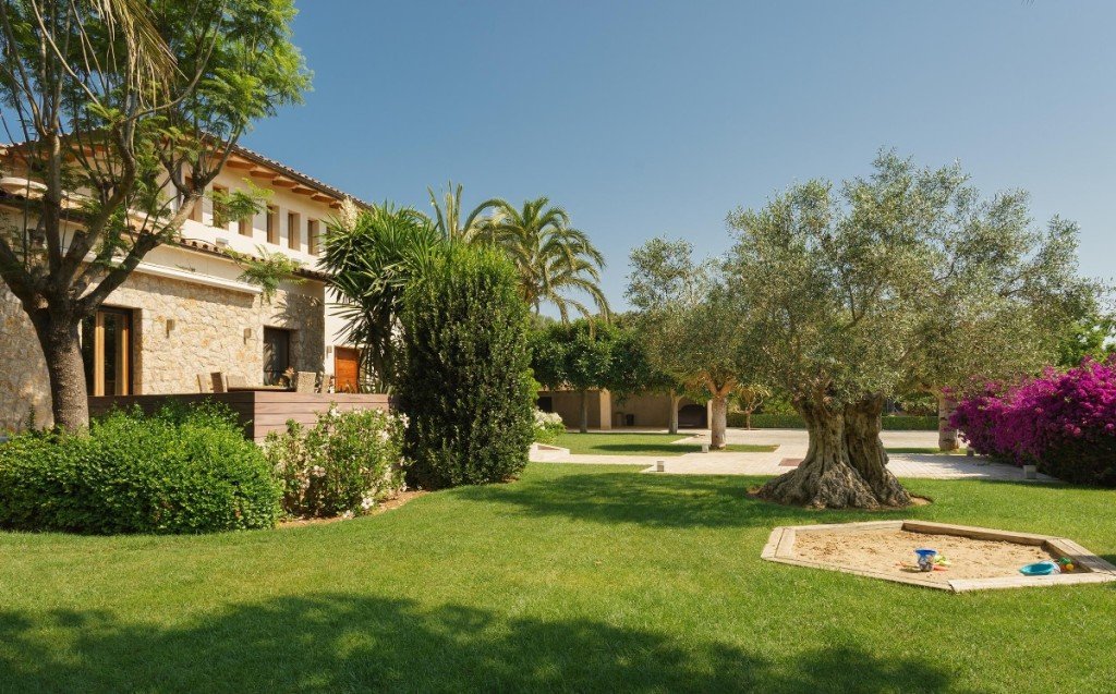 Das Haus befindet sich auf 17.757m2 Land, von denen ca. 4.000 m2 in sorgfältig angelegten Gartenflächen mit wunderschönen, mediterranen Bäumen und ausgedehnten, gepflegten Rasenflächen kultiviert werden. In der Nähe des Pools, der von einer großen, sonnigen Terrasse umgeben ist, sind eine Sommerküche mit Essbereich und eine elegante, separate Chill-Lounge. Der Bau dieses stillvollen Hauses wurde 2007 fertiggestellt, das äußere Erscheinungsbild mit der Kombination von Natur- und Sandstein, ist so typisch für charmante mallorquinische Landhäuser.