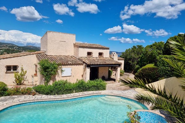 In einer Wohngegend von Cavalaire sur mer mit schönem Meerblick für diese schöne Villa in traditioneller Bauweise aus den 70er/80er Jahren und ihrem Swimmingpool aus dem Jahr 1994, Fläche von ca. 180m2/190m2 auf einem Grundstück von 1631m2 gebaut, bestehend aus: im Erdgeschoss: Flurzugang zum Hauptschlafzimmer, Gästezimmer, Bad und WC. Das Wohnzimmer und der Loungebereich mit Blick auf den Außengarten und den Swimmingpool, die Einbauküche, zahlreiche Terrassen mit Meerblick, aber auch auf der Wohnzimmerseite des Freiform-Swimmingpools. Auf der oberen Ebene: Zwischengeschoss. Im Erdgeschoss: 02 Schlafzimmer mit Bad und Dusche, WC, große Garage und Kriechkeller. In der Nähe von Geschäften, Stränden und nicht weit von Rayol Canadel entfernt. Sehr selten zum Verkauf!