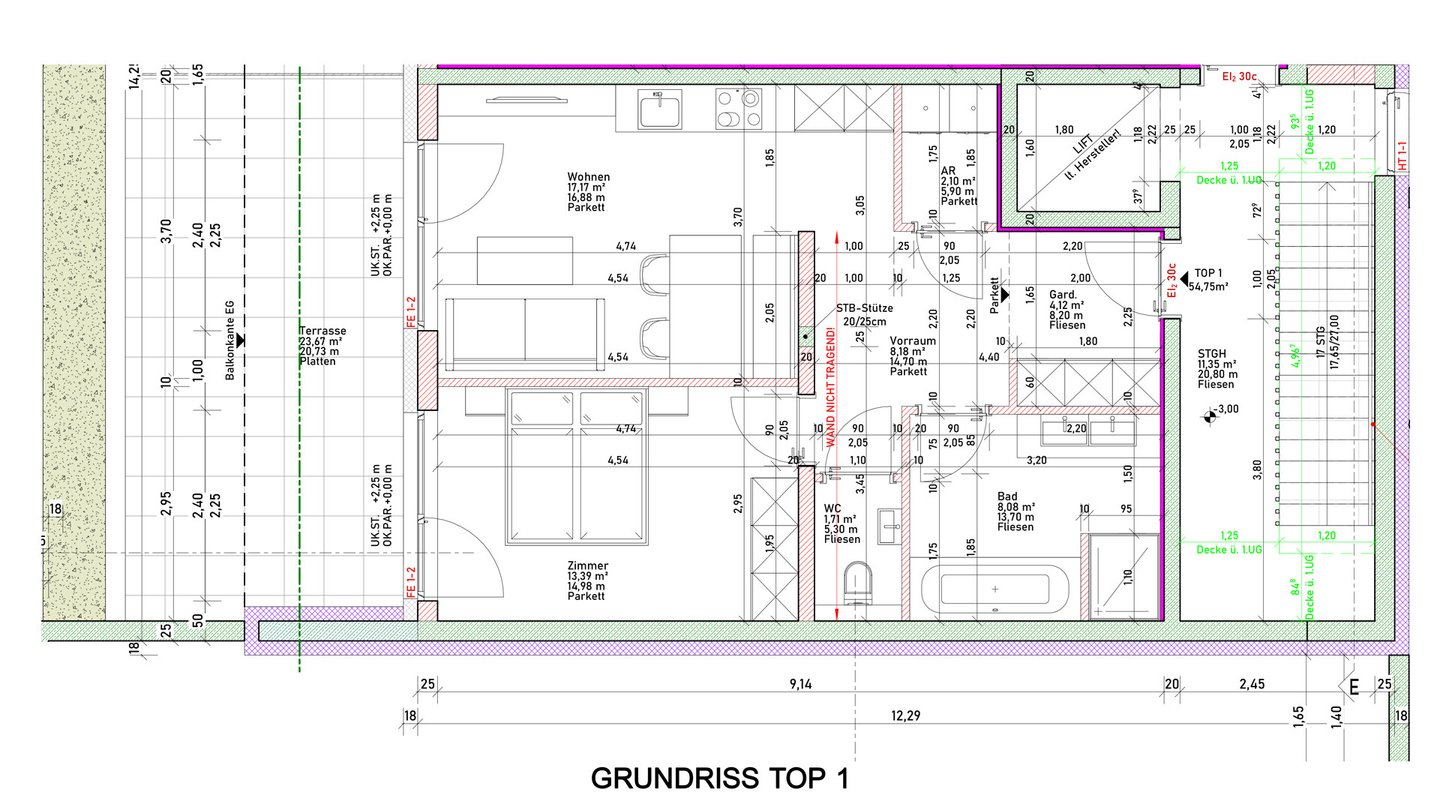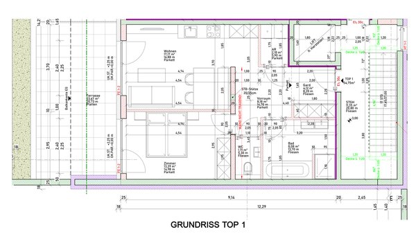 Die hier angebotene Gartenwohnung Top 1, bietet knapp 55 m² Wohnfläche und eine durchdachte Raumaufteilung: