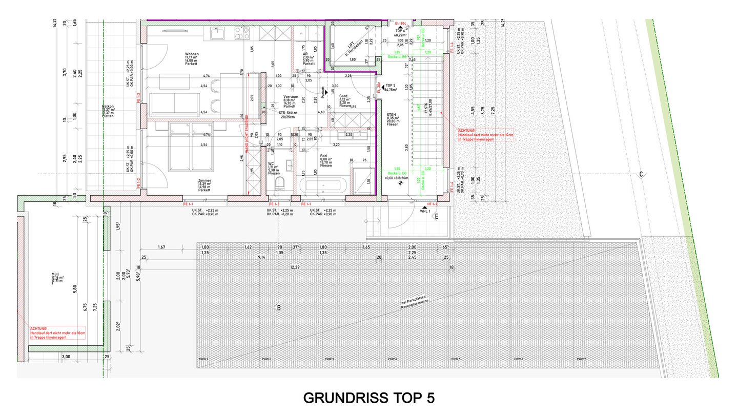 Die exklusive Wohnung Top 5 bietet auf knapp 55 m² ein durchdachtes Raumerlebnis und folgendes Raumkonzept: