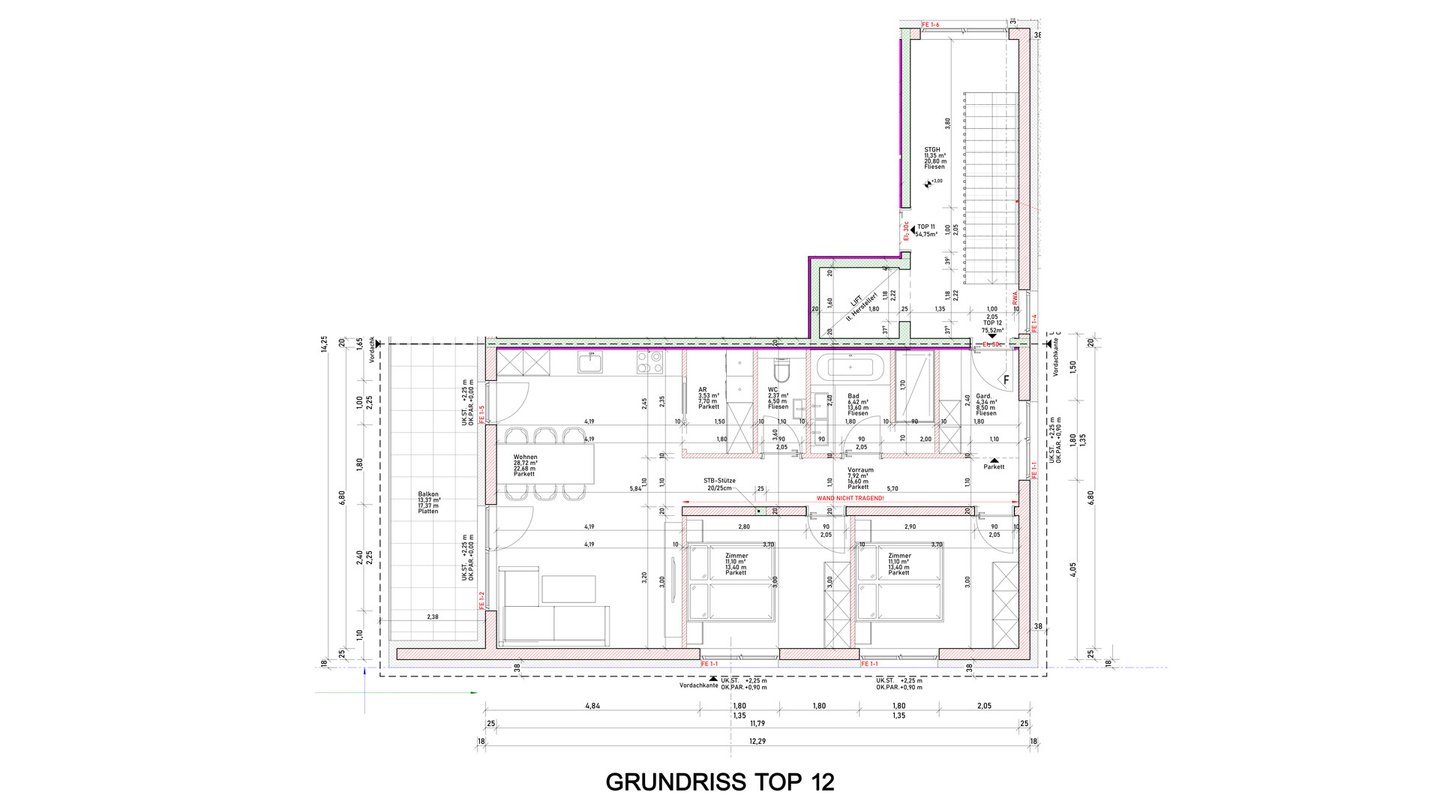 Die hier angebotene exklusive Eigentumswohnung Top 12 ist im Dachgeschoss der luxuriösen Wohnanlage situiert und bietet Ihnen einen fantastischen Rundumblick auf die Bergwelt. Die Wohnung verfügt über 75 m² Wohnfläche und teilt sich auf in den Eingangsbereich, den lichtdurchfluteten Wohn-Essbereich mit offener Küche, zwei Schlafzimmer mit Blick auf die Bergwelt, das Badezimmer mit großer Eckdusche, Badewanne und Doppelwaschtisch. Ein separater Abstellraum sowie eine eigene Gäste-Toilette runden die Wohnung perfekt ab. Der überdachte ca. 13 m² große Balkon bietet sodann einen weiteren Platz, um es sich gemütlich zu machen. Energiedaten in Arbeit.