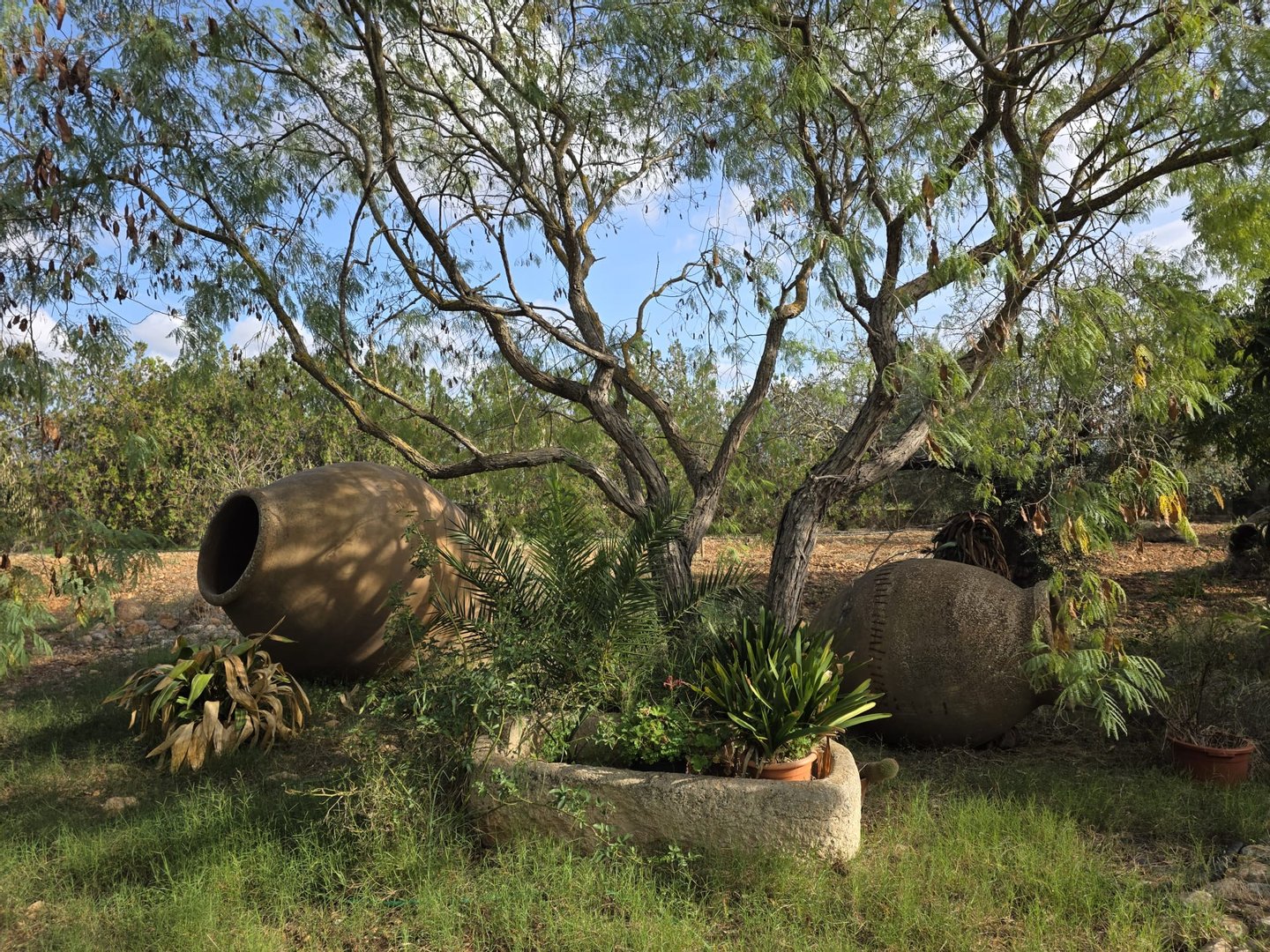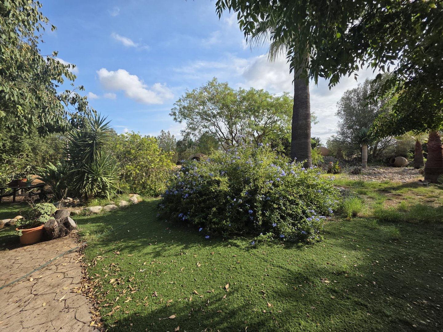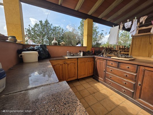 Der Außenbereich besticht durch weitläufige Terrassen, einen Swimmingpool, Carports für zwei Autos und zahlreiche Abstellmöglichkeiten. Das Grundstück ist von Obstbäumen gesäumt und bietet viel Platz für Garten- oder Agrarprojekte. Ein eigener, lizenzierter Brunnen, Anschluss an das öffentliche Stromnetz, eine Solaranlage sowie elektrische Heizkörper sorgen für Komfort und Unabhängigkeit.