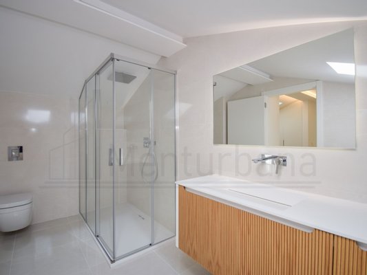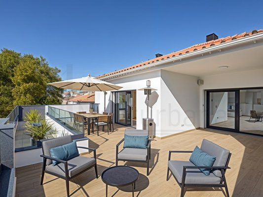 Bestehend aus 5 Fraktionen von T3-Typologien, finden wir 2 Fraktionen pro Etage, wobei das oberste Geschoss aus einer einzigen Wohnung mit Terrasse und ein Geschoss auf der Eingangsebene mit Zugang zu den Garagen besteht.