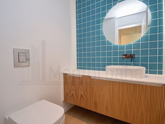 - Badezimmer aus Porzellanmosaik an den Böden und Wänden;