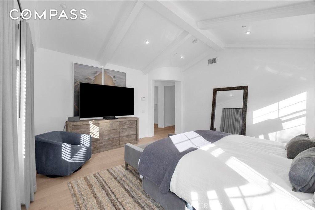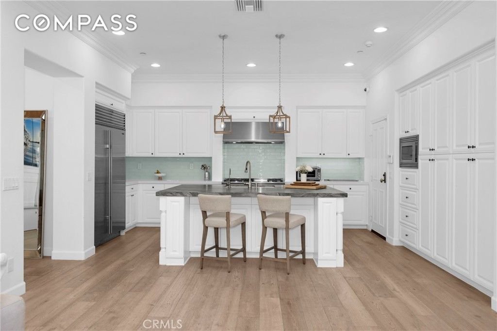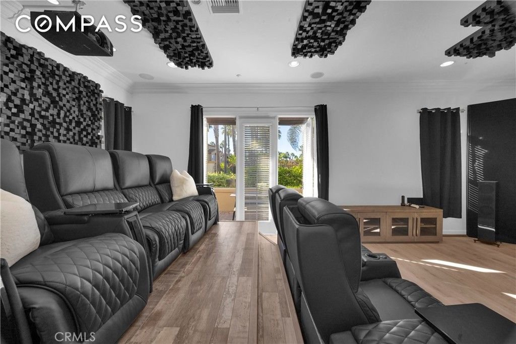 Erleben Sie das vom Resort inspirierte Leben an der Küste in einer der prestigeträchtigsten Wohnanlagen von Huntington Beach - The Waterfront. Diese exquisite Residenz mit 4 Schlafzimmern und 3,5 Bädern bietet den größten Grundriss der Gemeinde und eine unvergleichliche Lage direkt gegenüber dem Meer, nur wenige Minuten von erstklassigen Restaurants, Surfbreaks und Resort-Zielen entfernt. Die untere Ebene des Hauses wurde mit Blick auf Raffinesse und Komfort entworfen und verfügt über edle Eichenböden, die zu einer Kochküche führen, die mit einem DCS 6-Flammen-Kochfeld und Backofen, einem SubZero-Kühlschrank, Soft-Close-Schränken, Quarz-Arbeitsplatten und einer beeindruckenden brasilianischen Insel aus gebürstetem Granit ausgestattet ist. Die offene Aufteilung geht nahtlos in den Wohn- und Essbereich über und schafft eine einladende Atmosphäre sowohl für den Alltag als auch für die Unterhaltung. Ein vielseitiges Schlafzimmer im Erdgeschoss wurde sorgfältig in ein schalldichtes Theater oder Musikstudio verwandelt, komplett mit Bühne und Projektorleinwand – ideal für immersive Filmabende oder Musiksessions in professioneller Qualität. Im Obergeschoss befinden sich zwei geräumige Gästesuiten mit begehbaren Kleiderschränken, eine davon mit eigenem Bad, während die Hauptsuite mit gewölbten Decken, einem begehbaren Kleiderschrank und Blick auf den glitzernden Gemeinschaftspool beeindruckt. Mit exklusivem Zugang zu Annehmlichkeiten im Resort-Stil und einer unschlagbaren Lage nur wenige Minuten vom Sand entfernt, kombiniert dieses seltene Angebot Eleganz, Komfort und das Beste des Lebens an der Küste.