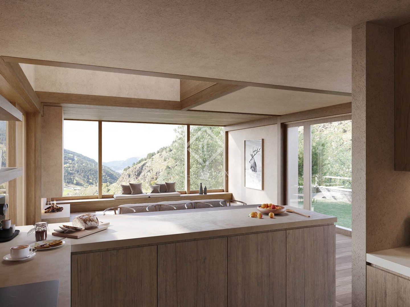 Das Anwesen genießt dank seiner privilegierten Ausrichtung und der großen, vom Boden bis zur Decke reichenden Fenster in den Haupträumen viel Tageslicht. Tatsächlich besteht die Hauptfassade fast vollständig aus Glas. Darüber hinaus zeichnet sich die architektonische Gestaltung durch natürliche Materialien wie Stein und Holz aus, die sich nahtlos in die Umgebung einfügen. Es bietet einen atemberaubenden Blick auf die Berglandschaft Andorras.
