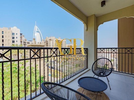 Geräumige Terrasse mit Blick auf Burj Al Arab und Parkblick
