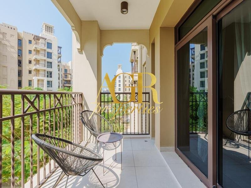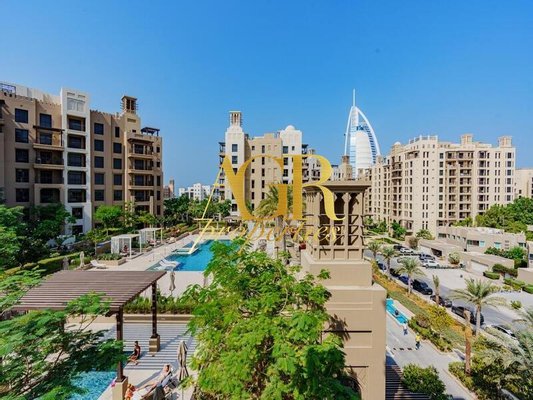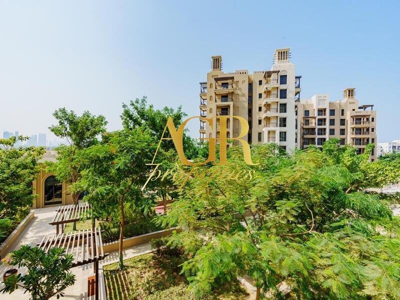 Dieses voll möblierte, aufgewertete Zuhause definiert den Luxus mit seinem modernen Design, der geräumigen Terrasse und dem atemberaubenden Blick auf den Burj Al Arab und die üppige Parkumgebung neu.