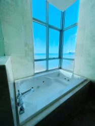 3 Schlafzimmer, jedes mit eigenem Bad und begehbaren Kleiderschränken. Das Hauptschlafzimmer hat eine spektakuläre Aussicht und eine unglaubliche Badewanne.