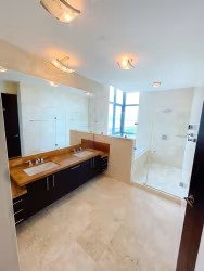 3 Schlafzimmer, jedes mit eigenem Bad und begehbaren Kleiderschränken. Das Hauptschlafzimmer hat eine spektakuläre Aussicht und eine unglaubliche Badewanne.