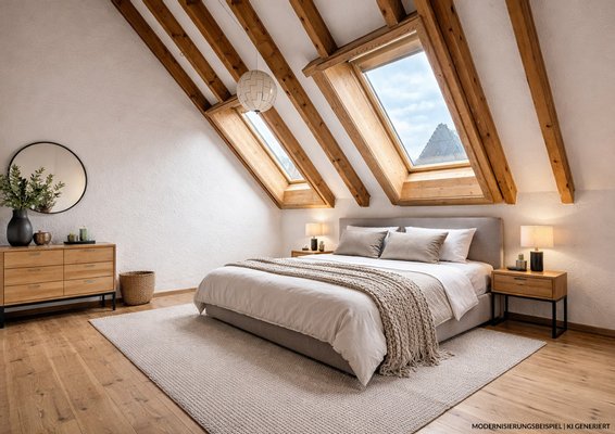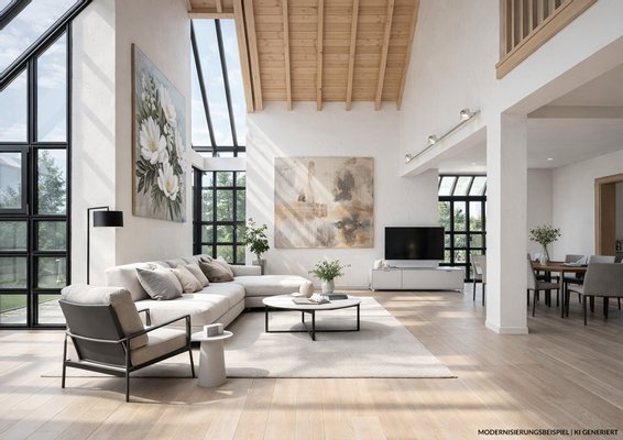 Die Visualisierungen zeigen einen beispielhaften Ausbau. Eine schlüsselfertige Modernisierung und eine Erweiterung auf bis zu 280 m² nach Ihren Wünschen ist optional. Mehr dazu in unserem Exposé.