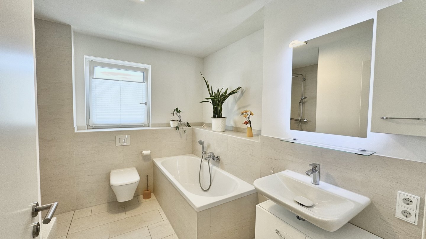 - Tageslicht-Duschbad mit hochwertiger Sanitärausstattung sowie separates Gäste-WC