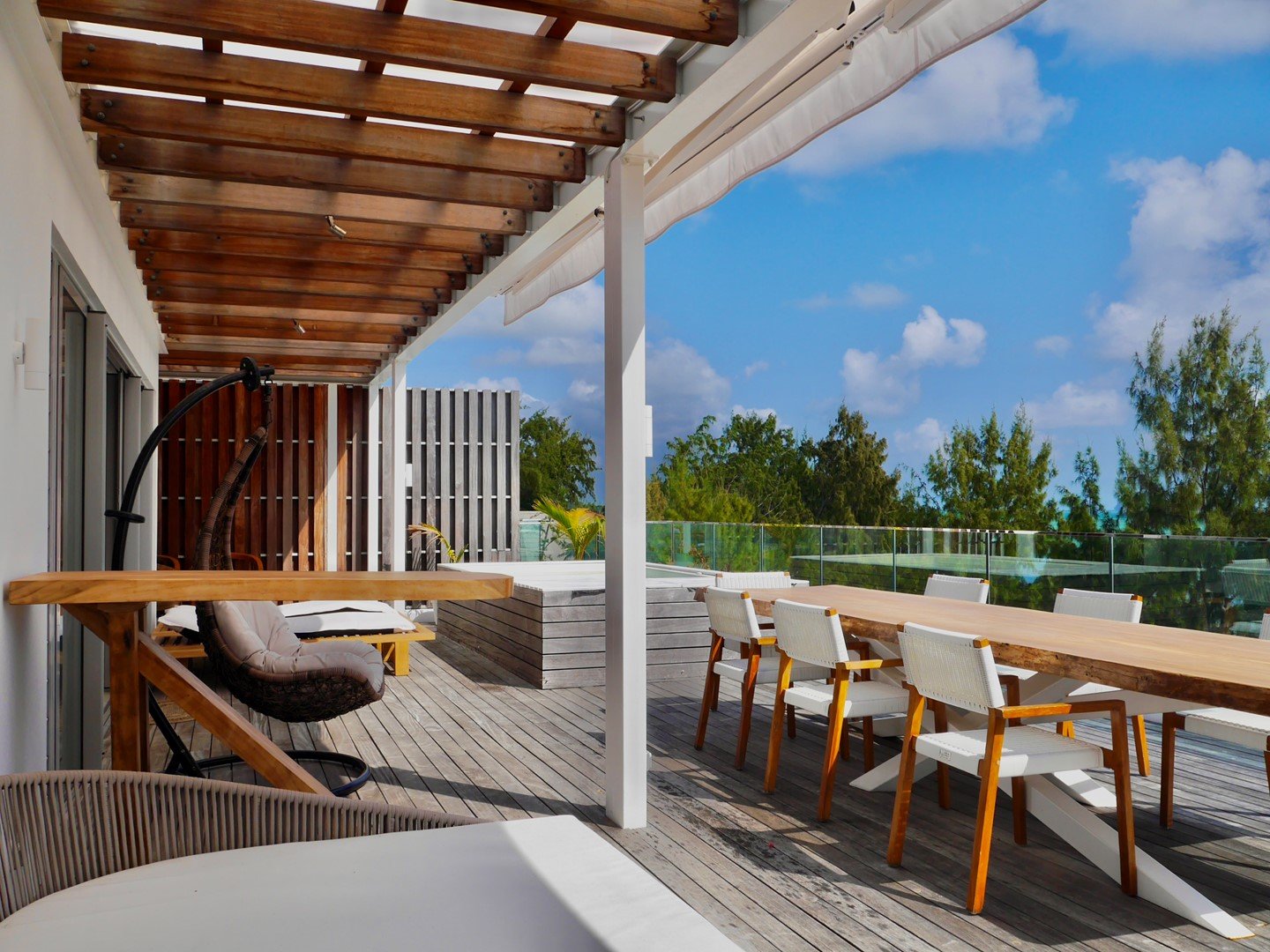 Dieses atemberaubende Penthouse mit 3 Schlafzimmern und eigenem Bad bietet den ultimativen Lebensstil am Strand im Herzen von Grand Gaube. Voll möbliert und mit moderner Eleganz gestaltet, verfügt es über eine helle offene Küche und geräumige Wohnbereiche, die sich nahtlos in einen weitläufigen Balkon übergehen. Hier können Sie mit Familie und Freunden speisen, sich im privaten Whirlpool entspannen und einen ungestörten Meerblick und ein weitläufiges Panorama auf die nördlichen Inseln genießen.