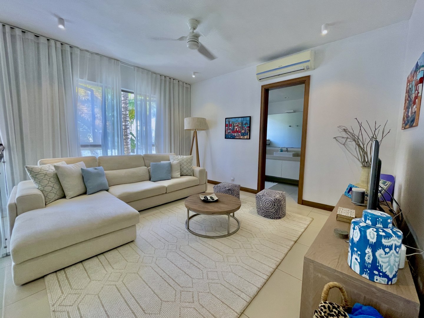 Die Bewohner genießen Zugang zu außergewöhnlichen Annehmlichkeiten des Anwesens, darunter ein gemeinsames Schwimmbad, ein Fitnessstudio und ein kompletter Generator. Ein sicheres Gitter zur Gesichtserkennung führt zu einer privaten Gasse mit direktem Strandzugang – komplett mit einem kleinen Pool und Sitzbereich, der ausschließlich den Bewohnern vorbehalten ist.