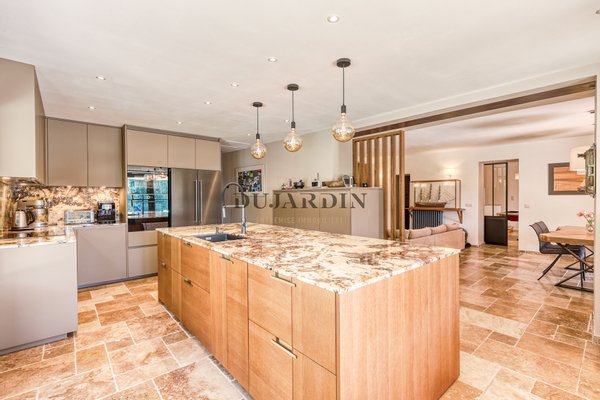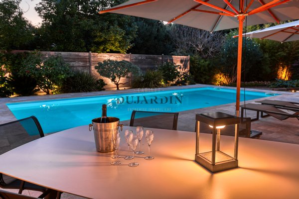 Dieses Wohlgefühl setzt sich im Inneren des Gebäudes mit hellen, geräumigen Zimmern mit gepflegten Oberflächen fort. Im Erdgeschoss genießen Sie eine voll ausgestattete und raffinierte Küche, ein warmes Wohn-Esszimmer, ein Billardzimmer und eine Suite mit Blick auf den Pool. Im ersten Stock befinden sich zwei Suiten, von denen eine über eine große Terrasse verfügt, ein weiteres Schlafzimmer, ein Büro und eine Waschküche. Eine unabhängige Zweizimmerwohnung mit eigenem Parkplatz bietet Ihnen die Möglichkeit, zu empfangen oder zu mieten. Täglich werden Sie das Wasser aus dem Brunnen für den Garten, die Kühle des Gewölbekellers, die Doppelgarage von ca. 100 m2 sowie die Photovoltaik-Stromerzeugungsanlage zu schätzen wissen.
