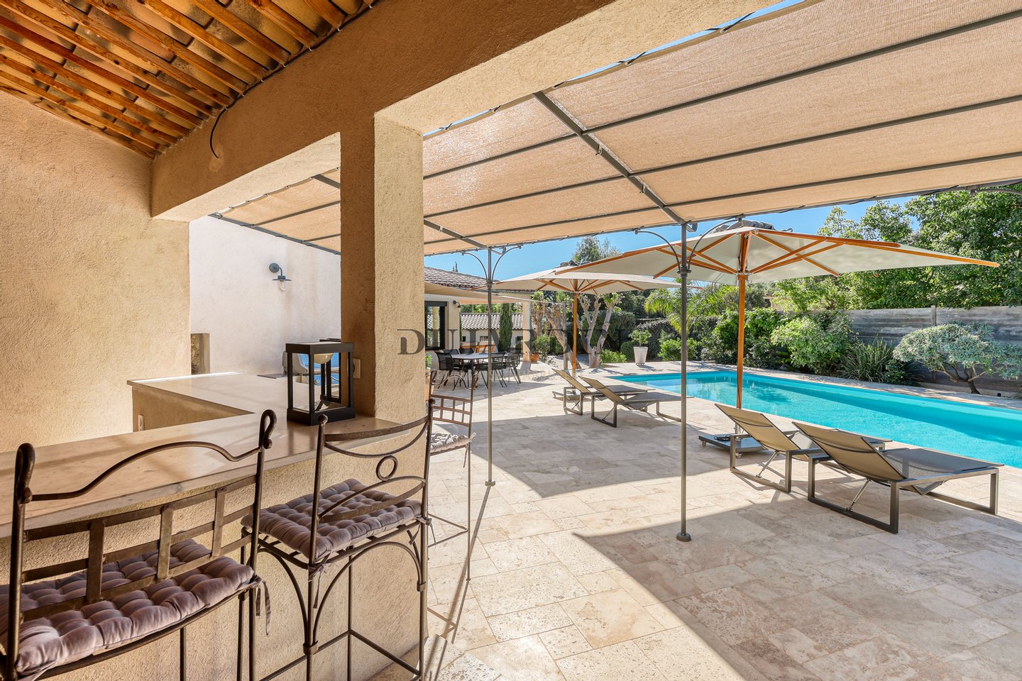 Große Wohnbereiche im Freien zwischen Schatten und Licht, für jeden Moment des Tages, mit üppiger Vegetation, verschönert mit einem Poolhaus, einer Sommerküche und einer herrlichen überdachten Terrasse sorgen für Momente der Entspannung und Geselligkeit ohne Gegensatz.