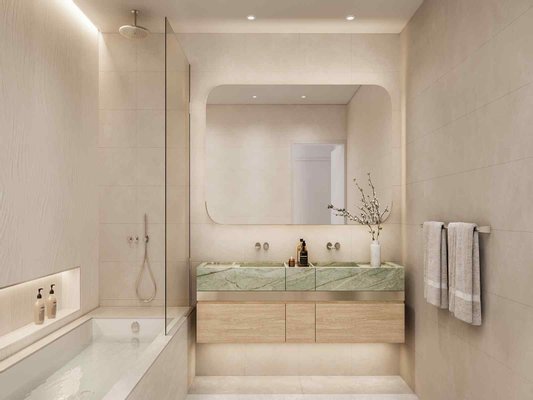 Vollständig geflieste Waschräume mit Premium-Oberflächen