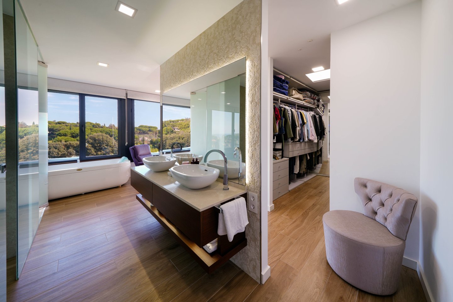 Vier Suiten, eine davon mit Ankleidezimmer. Großzügige, helle Räume mit absoluter Privatsphäre.