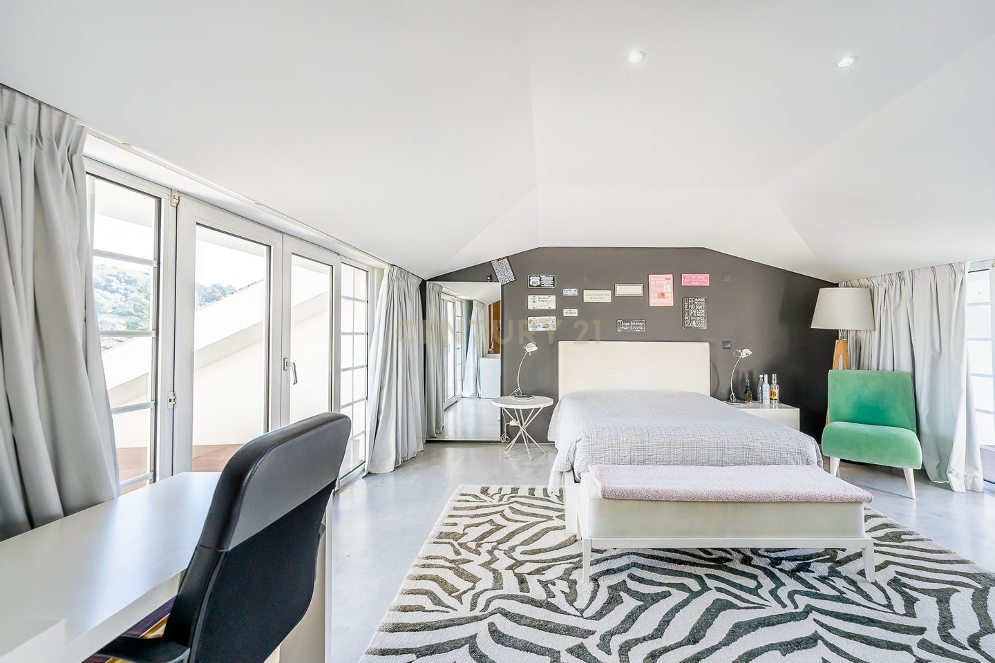 In den oberen Etagen befinden sich komfortable Schlafzimmer, eine helle Suite und ein vielseitiges Studio in der obersten Etage mit privaten Terrassen, ideal zum Entspannen oder zum Schaffen eines privaten Rückzugsortes.
