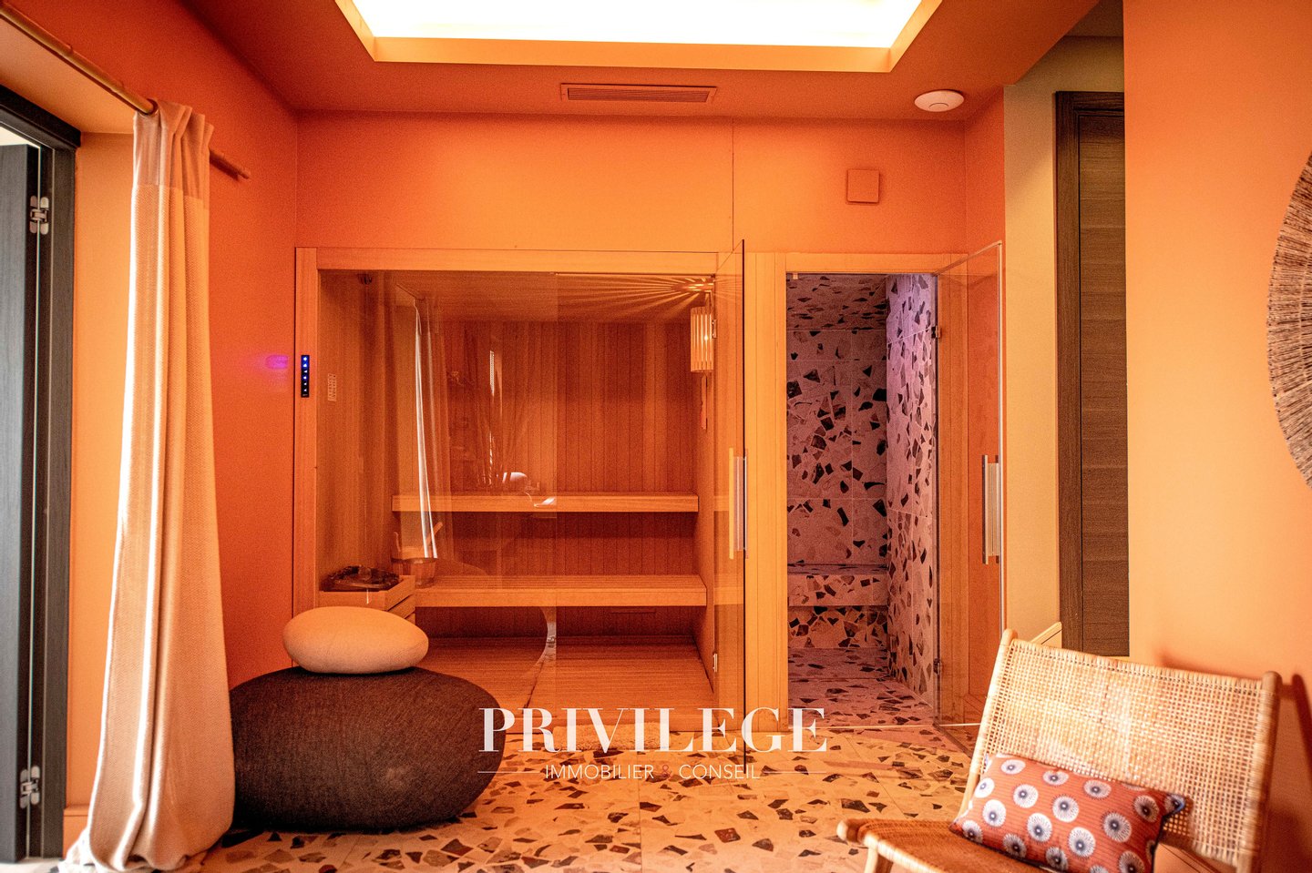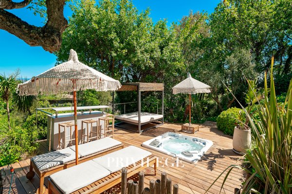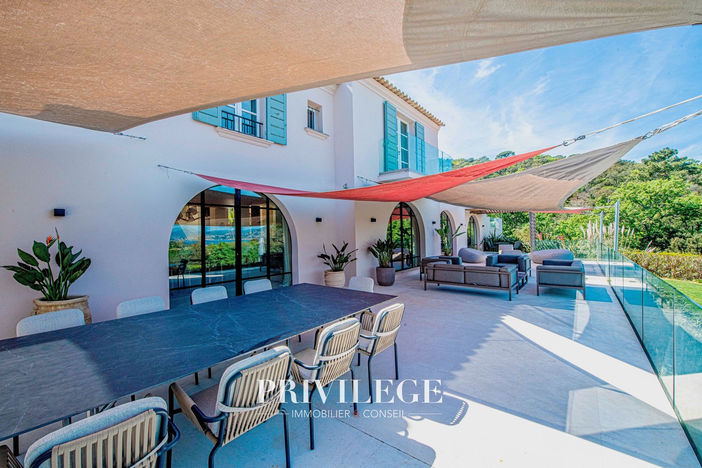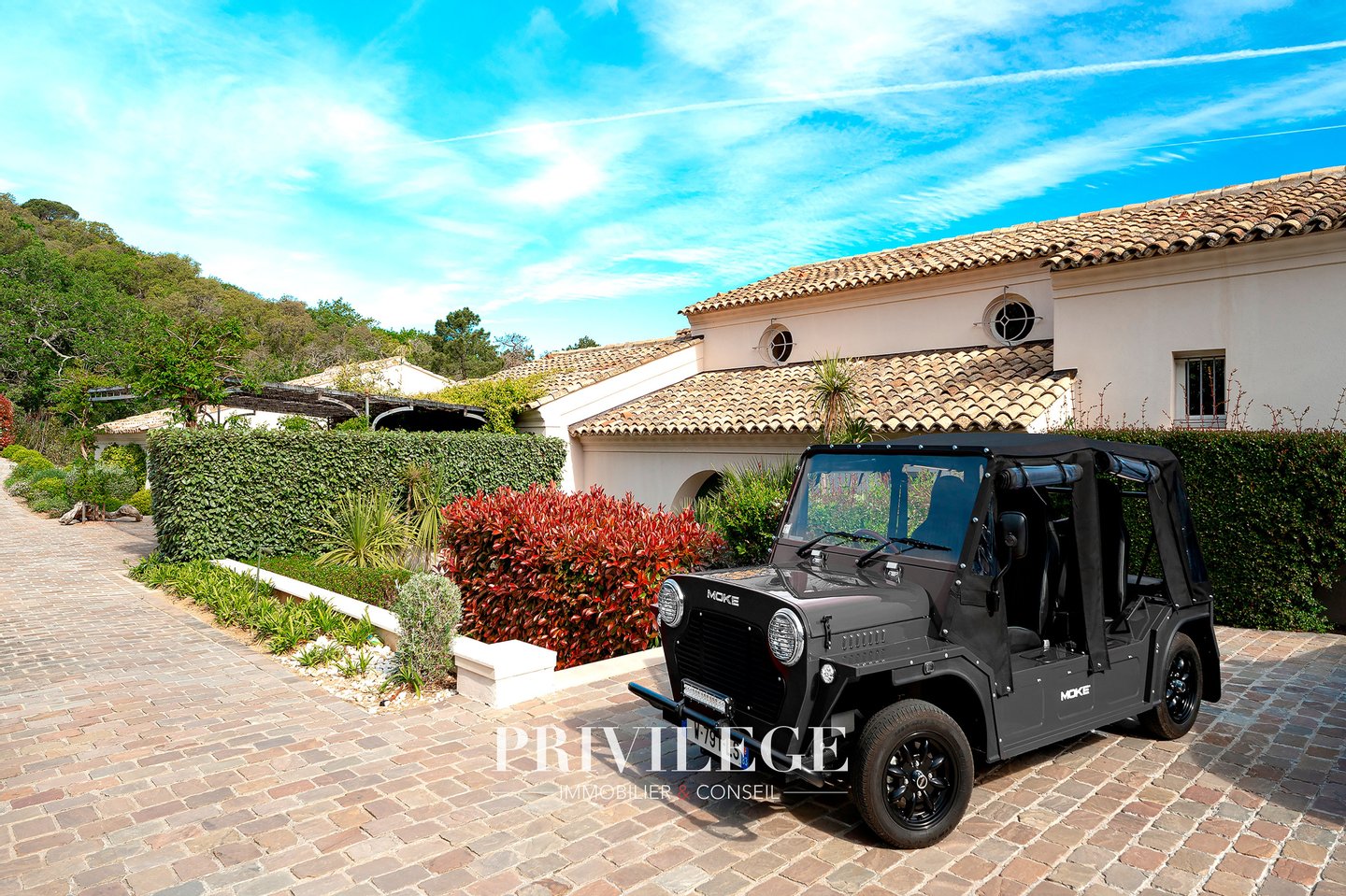 Ideal gelegen zwischen den mythischen Stränden von Pampelonne und dem legendären Dorf Saint-Tropez, verkörpert dieses außergewöhnliche Anwesen die perfekte Harmonie zwischen zeitgenössischer Eleganz und provenzalischem Charme. Eingebettet im Herzen einer geschützten Umgebung bietet es ein bezauberndes Panorama auf die Landschaft und das Mittelmeer, wo jeder Sonnenuntergang zu einem privaten Spektakel wird. Die Villa wurde auf einem prächtigen Landschaftsgrundstück erbaut und offenbart eine Architektur mit klaren Linien und majestätischen Volumen. Die geräumigen Empfangsräume von fast 100 m2 öffnen sich weit zu den Terrassen und dem Infinity-Pool und verwischen die Grenze zwischen Innen- und Außenbereich. Licht, Gelassenheit und Raffinesse herrschen. Die sieben Suiten, darunter eine prunkvolle Master-Suite, laden zu Ruhe und Privatsphäre ein. Ein unabhängiger Serviceraum mit eigener Küche und Bad vervollständigt das Set. Das Anwesen ist auf absolutes Wohlbefinden ausgelegt und beherbergt einen Kinoraum, einen Fitnessraum, ein Hammam, eine Sauna, einen Massageraum und mehrere Außen- und Innenwhirlpools, die Momente der Entspannung vor der Natur und dem Meer bieten, sowie einen zugelassenen Hubschrauberlandeplatz, der einen direkten und vertraulichen Zugang aus der Luft ermöglicht. Diese exklusive Adresse ist eine seltene Kombination aus Diskretion, Komfort und Prestige und verkörpert die Essenz des tropezianischen Luxus, eine Einladung, das Außergewöhnliche zwischen Meer und Land an einem der begehrtesten Orte des Mittelmeers zu erleben.