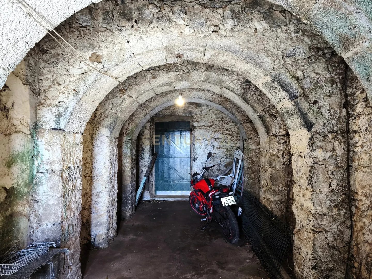 Erdgeschoss: Zwei Garagen, fünf ehemalige Weinkeller mit originalen Weingeräten, eine vollständig renovierte T2-Wohnung (55 m²) und Platz für eine zweite Wohnung.