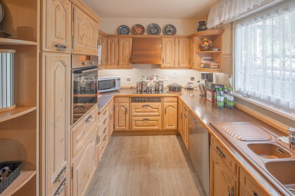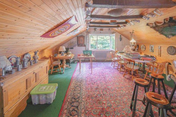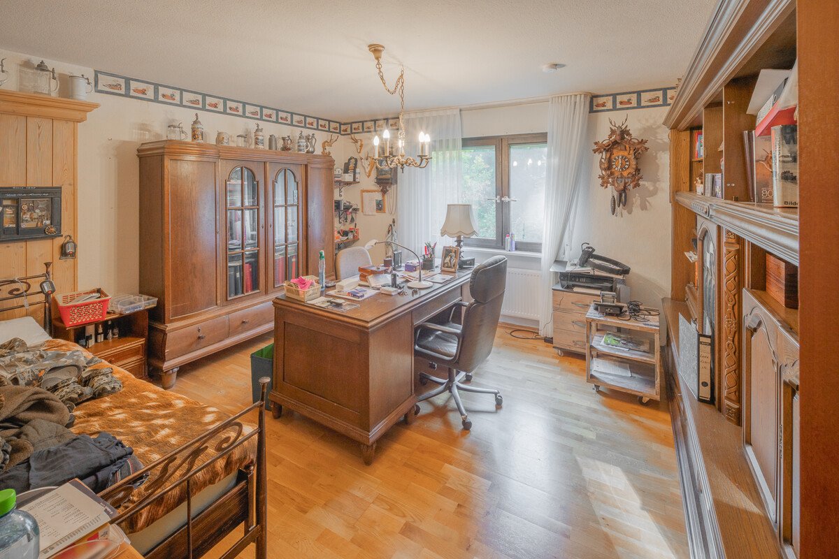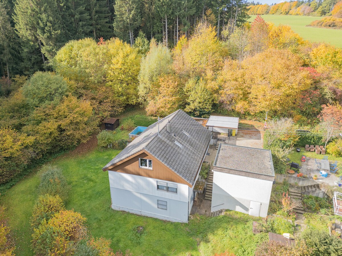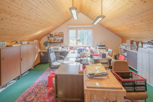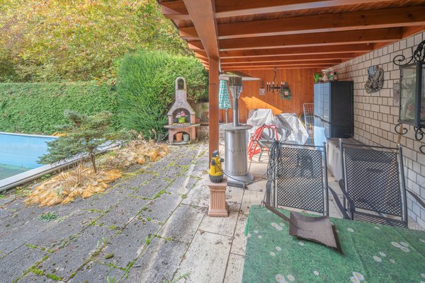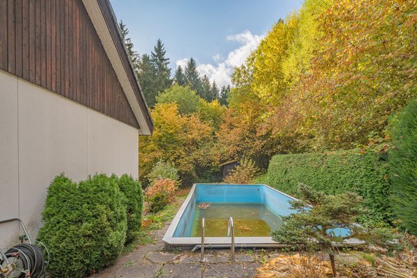 Das Dachgeschoß verfügt über einen Hobbyraum und ein weiteres Zimmer. Die schön angelegte und durch Bäume eingefasste Geländeanlage verfügt über ein Schwimmbecken, mehrere Freisitze und eine großzügige Garage.