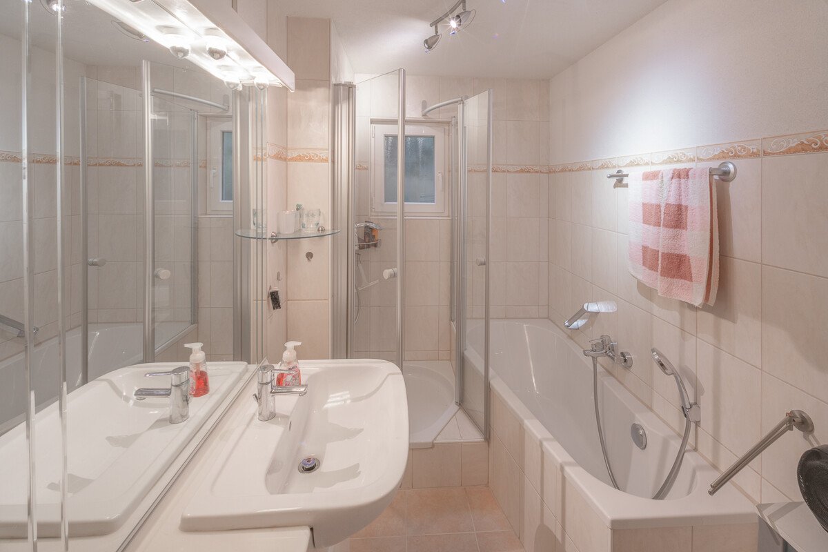 Das mit 6,5 Zimmern ausgestattete Anwesen verfügt über eine abgeschlossene 3,5 Zimmer Wohnung im Erdgeschoß und eine abgeschlossene 3 Zimmer Wohnung im Untergeschoß. Somit wäre es auch als 2 Familienhaus nutzbar. Beide Wohnungen haben etwas mehr als ca. 80 qm Wohnfläche.
