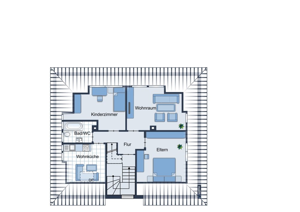 Das Dachgeschoss beherbergt eine 3-Zimmerwohnung mit ca. 65 m². Das Haus ist voll unterkellert und bietet den Bewohnern genügend Nutzfläche in diversen Abstellräumen.