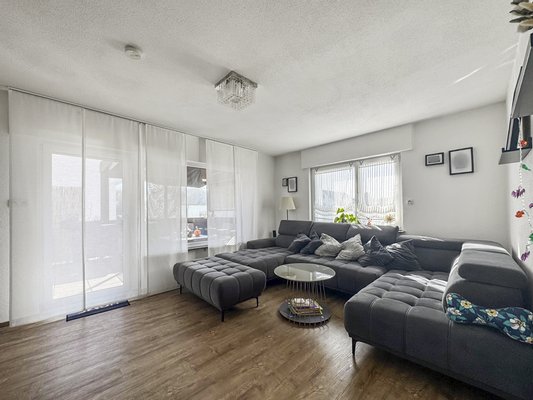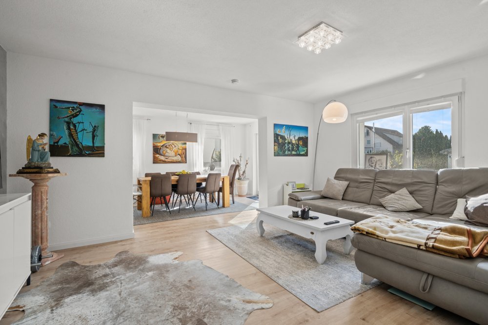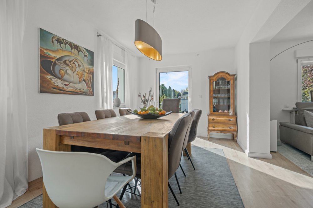 Im Erdgeschoss befindet sich eine 4,5 Zimmerwohnung mit ca. 100 m² Wohnfläche, aufgeteilt in ein großes Wohnzimmer mit angrenzenden Esszimmer ...mehr lesen