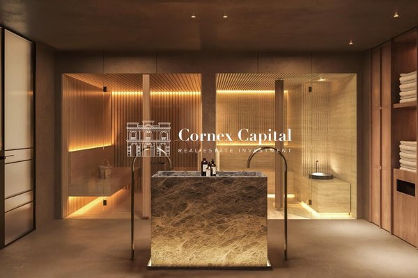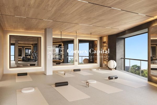 Zu den Gemeinschaftsbereichen gehören ein hochmodernes Spa, ein Infinity-Pool auf dem Dach, ein Kinderclub und ein voll ausgestattetes Fitnessstudio, alles für ein außergewöhnliches Wohnen konzipiert. Um maximalen Komfort zu gewährleisten, bietet die Siedlung Parkplätze für Autos, Motorräder und Fahrräder sowie Stauraien.