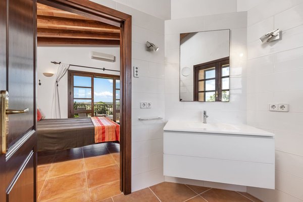 Im Obergeschoss warten 2 weitere Suiten, jeweils mit eigenem Bad, Klimaanlage und privater Terrasse. Von hier genießen Sie einen herrlichen Blick auf das Meer und die umliegenden Hügel.