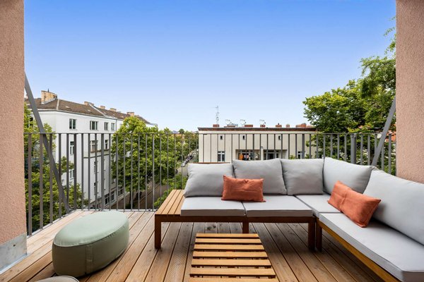 +Balkon mit Holzbelag auf Stahlkonstruktion