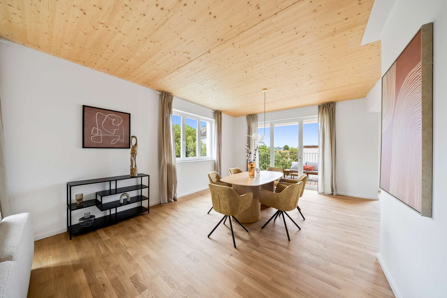 Zu den Ausstattungsmerkmalen zählen geöltes Eichenparkett, eine angenehme Fußbodenheizung, hochwertige Fliesen im Sanitärbereich, Sanitärobjekte von Villeroy & Boch und Hansgrohe sowie dreifach verglaste Holzfenster mit erhöhter Schalldämmung. Die Beheizung erfolgt über Fernwärme. Der Endenergiebedarf beträgt 56,4 kWh/(m²*a), Energieeffizienzklasse B.