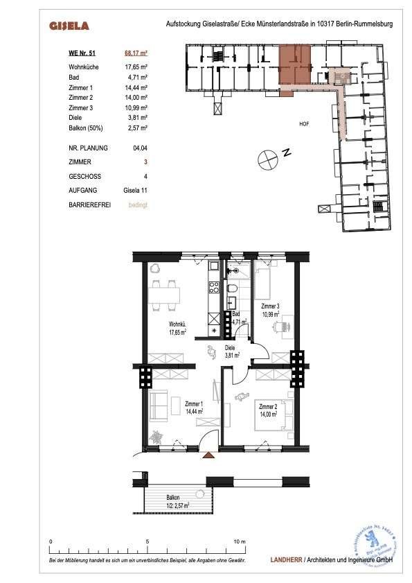 Diese ca. 68,17 m² große 4-Zimmer-Wohnung befindet sich im neu errichteten 4. Obergeschoss eines klassischen Berliner Altbaus. Im Rahmen einer hochwertigen Aufstockung entstehen hier moderne, lichtdurchflutete Wohneinheiten mit zeitgemäßer