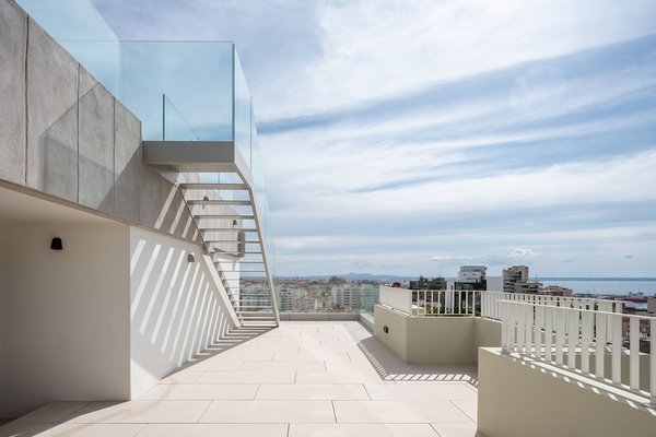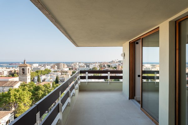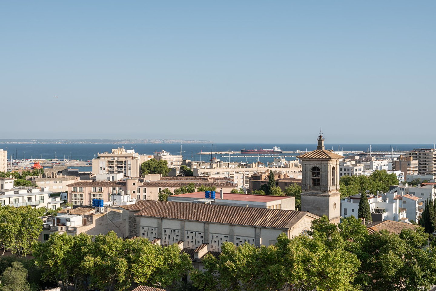Ein Highlight ist die rund 59 m² große Dachterrasse, die dank Süd-Ausrichtung ganztägig Sonne bietet. Von hier aus genießt man einen spektakulären Panoramablick auf die Berge, die Schloss Bellver, die Kathedrale und die Bucht von Palma. Die Dachterrasse ist mit Außendusche, BBQ-Vorinstallation und Platz für eine Sommerküche ausgestattet. Der Boden wurde zusätzlich verstärkt, um einen Whirlpool installieren zu können.