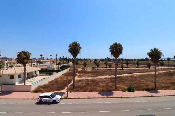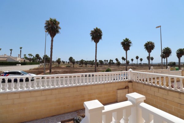 Diese Quad-Villa mit einer konstruierten Fläche von 104 m² bietet eine gut proportionierte Aufteilung auf zwei Etagen. Das Erdgeschoss umfasst ein helles Wohn-/Esszimmer, eine separate Einbauküche und eine praktische Garderobe, die alle über eine teilweise überdachte Eingangsterrasse zugänglich sind, die sich ideal für den Morgenkaffee eignet. Im ersten Stock befinden sich drei Doppelschlafzimmer, darunter ein Hauptschlafzimmer mit Einbauschränken und Zugang zu einer privaten Terrasse, sowie ein Familienbadezimmer. Eine Innentreppe führt zu einem geräumigen privaten Solarium mit herrlichem Blick auf den Salzsee und die Landschaft. Im Außenbereich bietet der geflieste Garten Parkplätze abseits der Straße, einen Carport und viel Platz zum Entspannen oder für Unterhaltung. Die Bewohner haben außerdem Zugang zu zwei Gemeinschaftspools. Diese Immobilie an der Costa Blanca Süd ist eine fantastische Gelegenheit für einen dauerhaften Wohnsitz, einen Urlaubsort oder eine Mietinvestition.