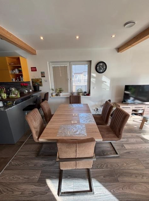 Die hochwertige Küche von Novel ist mit edler Naturstein-Arbeitsfläche sowie modernsten Geräten der Marke NEFF (Dampfgarer, Backofen, Induktionskochfeld) ausgestattet – ein Paradies für Hobbyköche und Genießer.