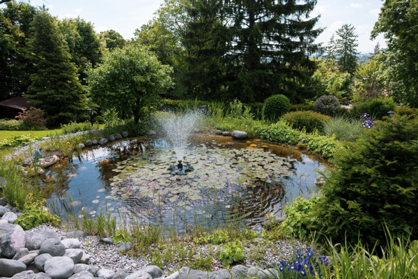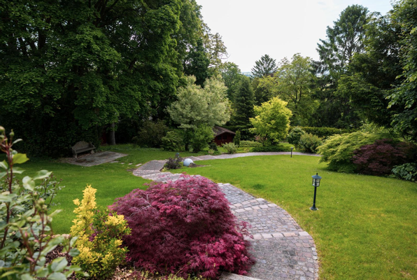 Liebevoll angelegter Garten im Parkstil mit altem Baumbestand, Biotop, Tee-Pavillon und Brunnen