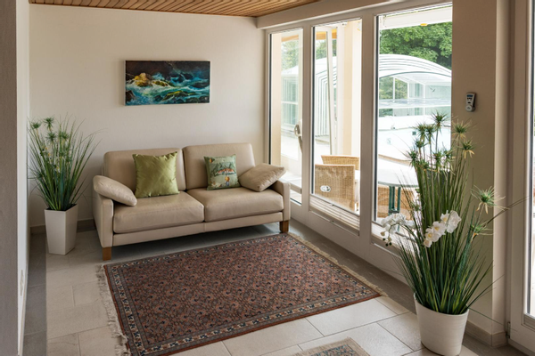 Exklusive Wellnesszone mit Sauna, Hobbyraum und gemütlichem Wintergarten mit Kamin