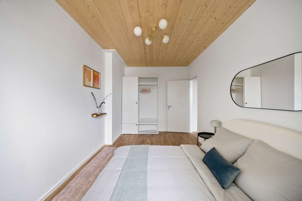 Im Rahmen einer hochwertigen Aufstockung auf einem klassischen Berliner Altbau entstand diese moderne 3-Zimmer-Wohnung im neu errichteten Staffelgeschoss. Die Bauarbeiten begannen im Jahr 2023, der Erstbezug ist für das Frühjahr 2025 vorgesehen.