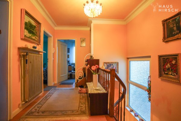 •Historisches Flair: Die Stadtvilla überzeugt mit klassischen Details wie Stuckverzierungen, hohen Decken und einem großzügigen Eingangsbereich.