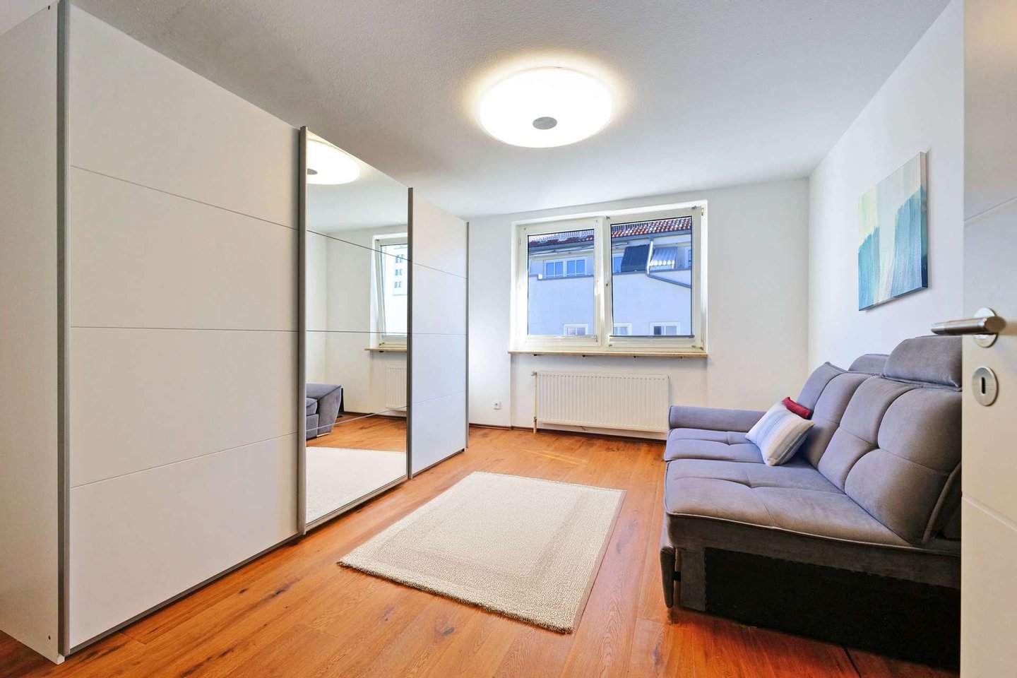 Die drei großzügig geschnittenen Zimmer bieten Raum für individuelles Wohnen – ob als behagliches Schlafzimmer mit Bad en Suite, stilvolles Homeoffice oder liebevoll gestaltetes Kinderzimmer. Der hochwertige Parkettboden unterstreicht das warme