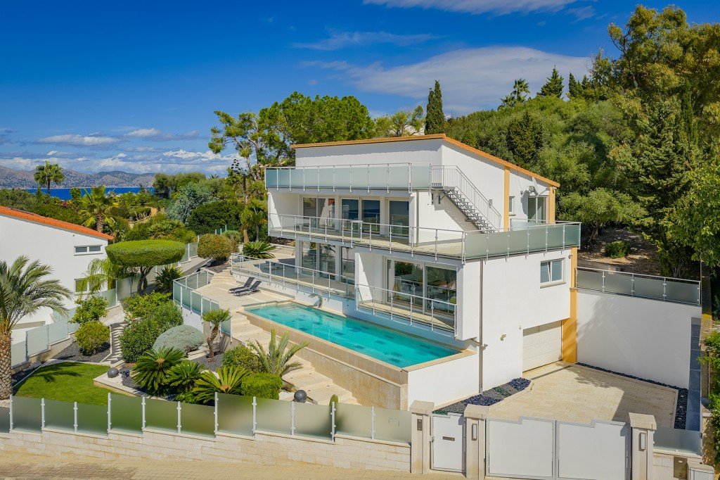 Diese zum Verkauf stehende Villa in Alcúdia bietet einen erhöhten Meerblick und eine ruhige Lage und vereint modernen Komfort mit hochwertiger Bauqualität.