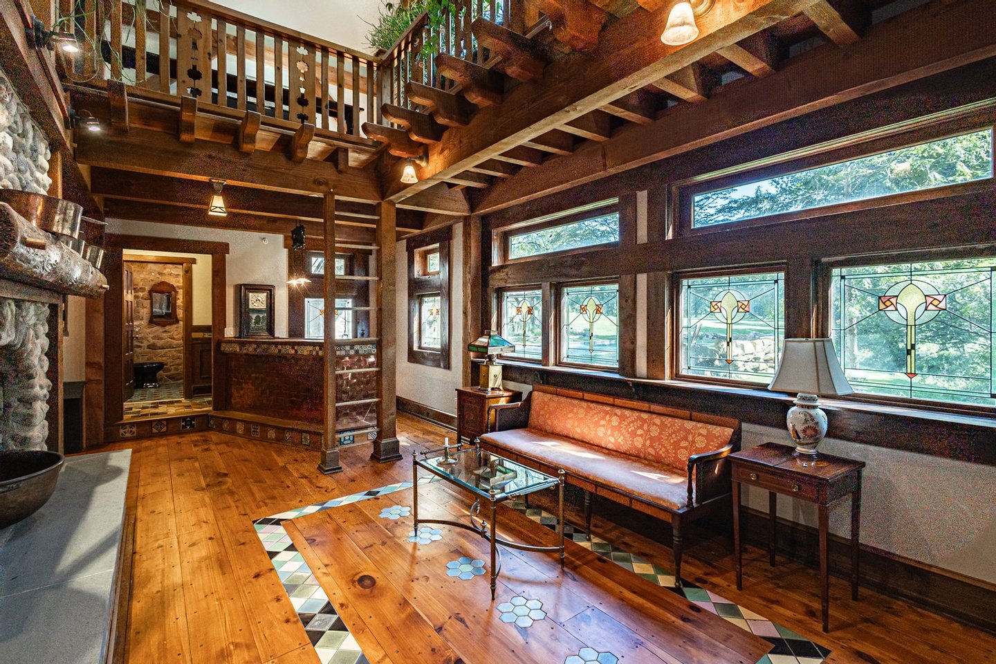 Fahren Sie eine kurvenreiche, bewachte Straße entlang, in der alte Bäume die Zufahrt zur Shelly Mill einrahmen, einem atemberaubenden Arts & Crafts-Meisterwerk, das aus einer Getreidemühle aus dem Jahr 1771 entstand, in der die Familie Ely die Getreideverarbeitung revolutionierte. Dieses außergewöhnliche Refugium verbindet auf fast 9,5 Hektar nahtlos jahrhundertealte Geschichte mit modernem Luxus. Treten Sie ein und entdecken Sie das vollständig erhaltene Mühlenhaus-Wasserrad mit einem Durchmesser von 18 Fuß, das in das Erdgeschoss integriert ist und von Tausenden von Boston Grueby-Fliesen aus der Jahrhundertwende, wiederverwerteten bleihaltigen Buntglasfenstern und einem dramatischen 35 Fuß hohen Kamin aus Flussstein umgeben ist. Originale große Mühlentüren und ineinandergreifende Sichtbalken erzählen Geschichten über das industrielle Erbe, während ein Aufzug und eine Gourmetküche für zeitgemäßen Komfort sorgen. Draußen können Sie sich rund um den glitzernden Salzwasserpool und die weitläufigen Blausteinterrassen unterhalten oder Gemüsegärten und endlose Grünflächen erkunden. Dieses wohnliche Vorzeigeobjekt bietet flexibles Mehrgenerationenwohnen, nur wenige Minuten von Doylestown, Peddler's Village und der lebendigen Kultur von New Hope entfernt.