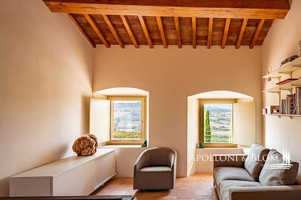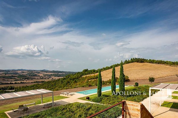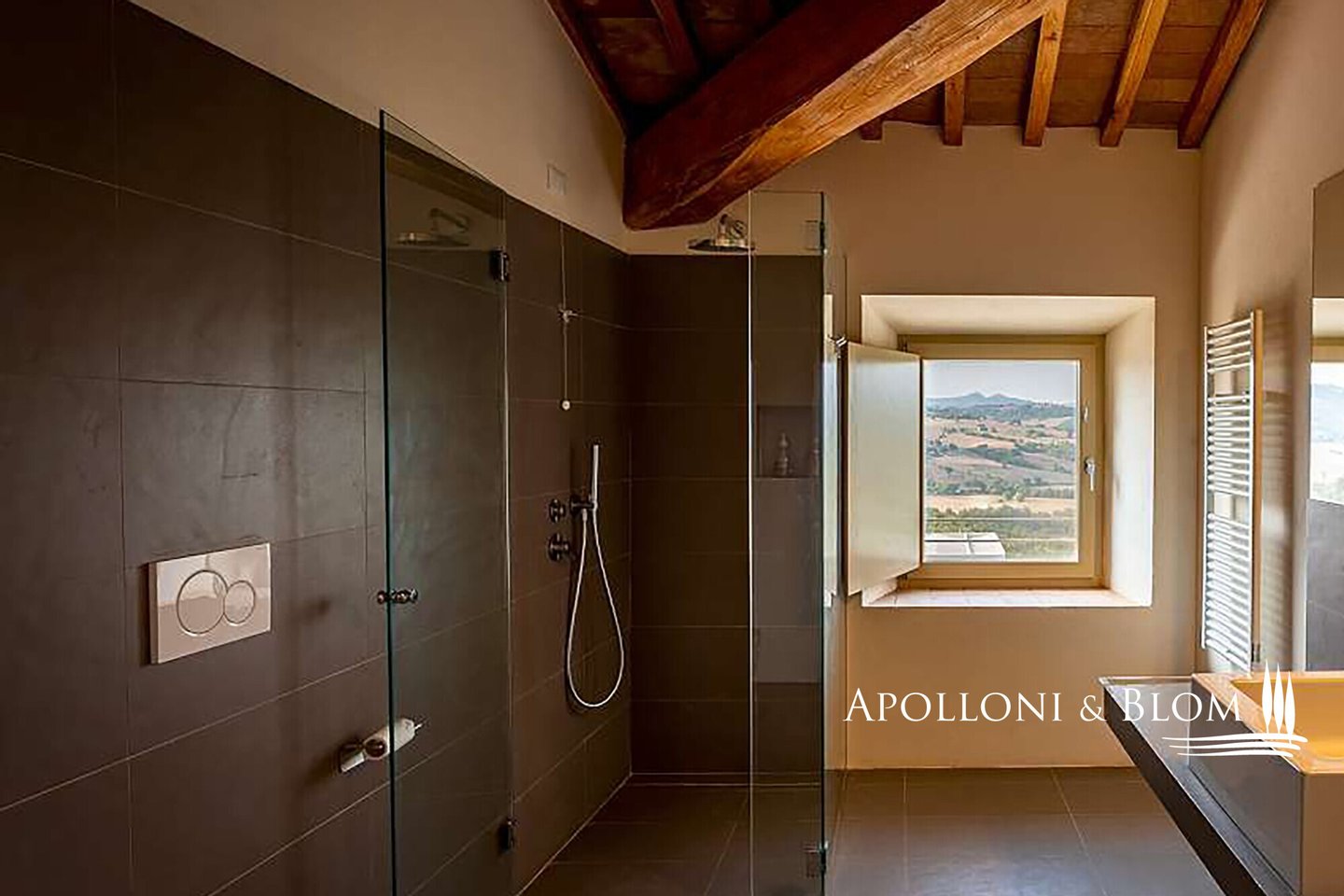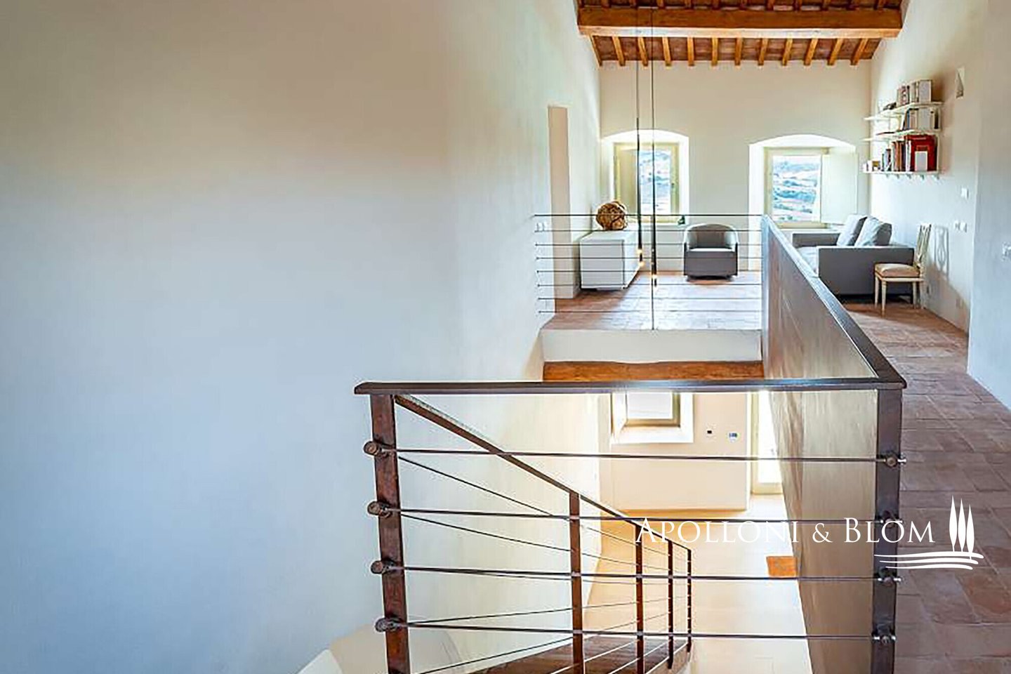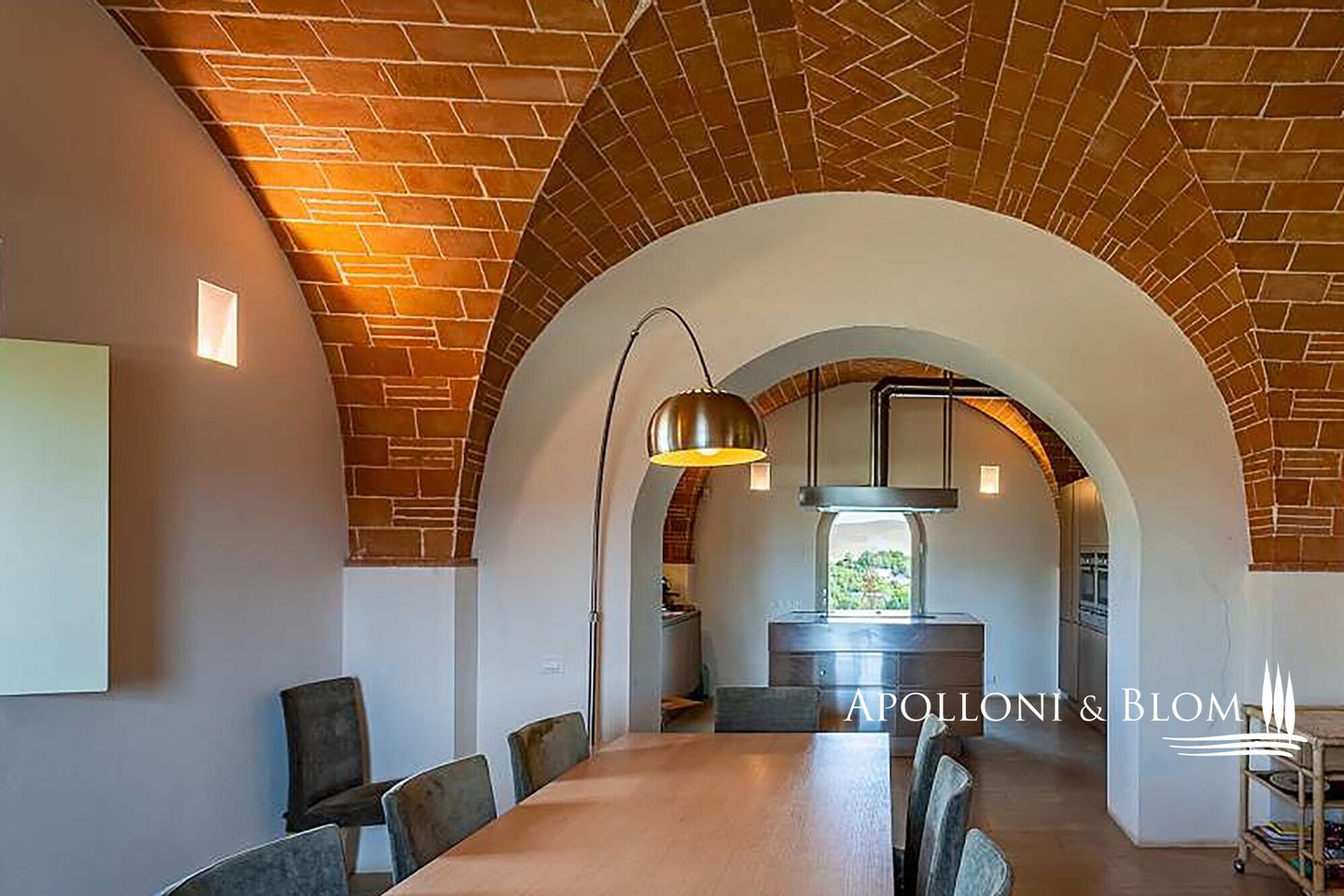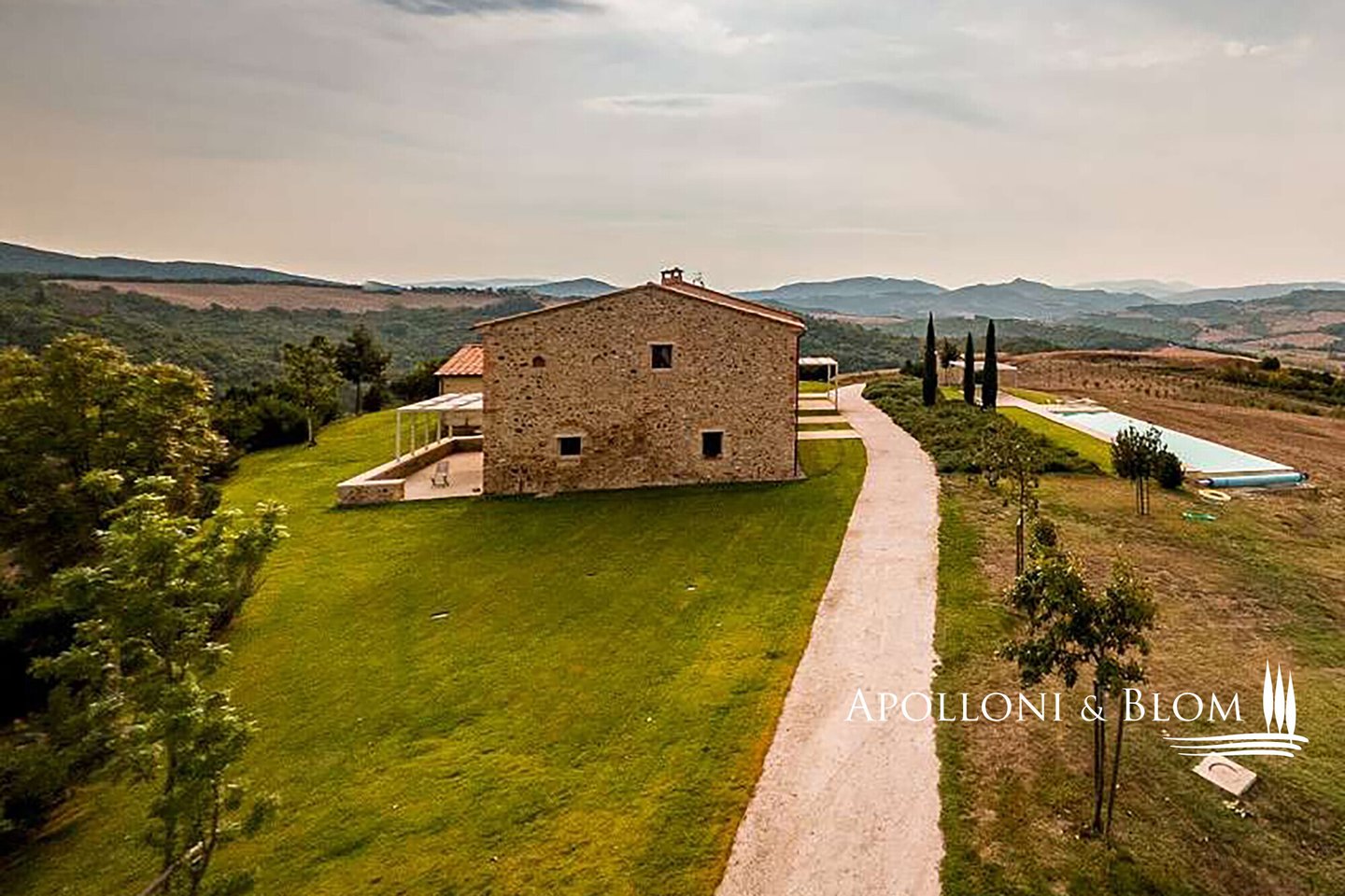 In der gesamten Villa sind hochmoderne Systeme installiert: Fußbodenheizung und -kühlung durch eine Wärmepumpe, Solar- und Fotovoltaikpaneele (19,5 kW) und ein komplettes Hausautomatisierungssystem für die intelligente Verwaltung des Hauses. Die mehr als einen Meter dicken Wände garantieren eine hervorragende Wärme- und Schalldämmung. Das Grundstück des Anwesens ist ein authentisches pastorales Bild mit Olivenhainen, Obstgärten, Feldern und Wäldern, mit etwa 600 Olivenbäumen, Obstgärten und Wäldern. Der 1,5 Hektar große Garten ist vollständig eingezäunt und mit zwei automatischen Toren, einem Bewässerungssystem, das von einer natürlichen Quelle gespeist wird, drei privaten Teichen und Zisternen zum Auffangen des Regenwassers ausgestattet. Ein 270 Quadratmeter großer Steinanbau mit einer Höhe von über 4 Metern bietet Platz für eine landwirtschaftliche Nutzung oder einen möglichen Umbau, wobei das Dach bereits mit Photovoltaik-Paneelen ausgestattet ist. Eine Oase der Privatsphäre, der Nachhaltigkeit und des Komforts, ideal als prestigeträchtige Privatresidenz oder als exklusives Haus mit Charme für Gäste, die die authentische Toskana erleben möchten.