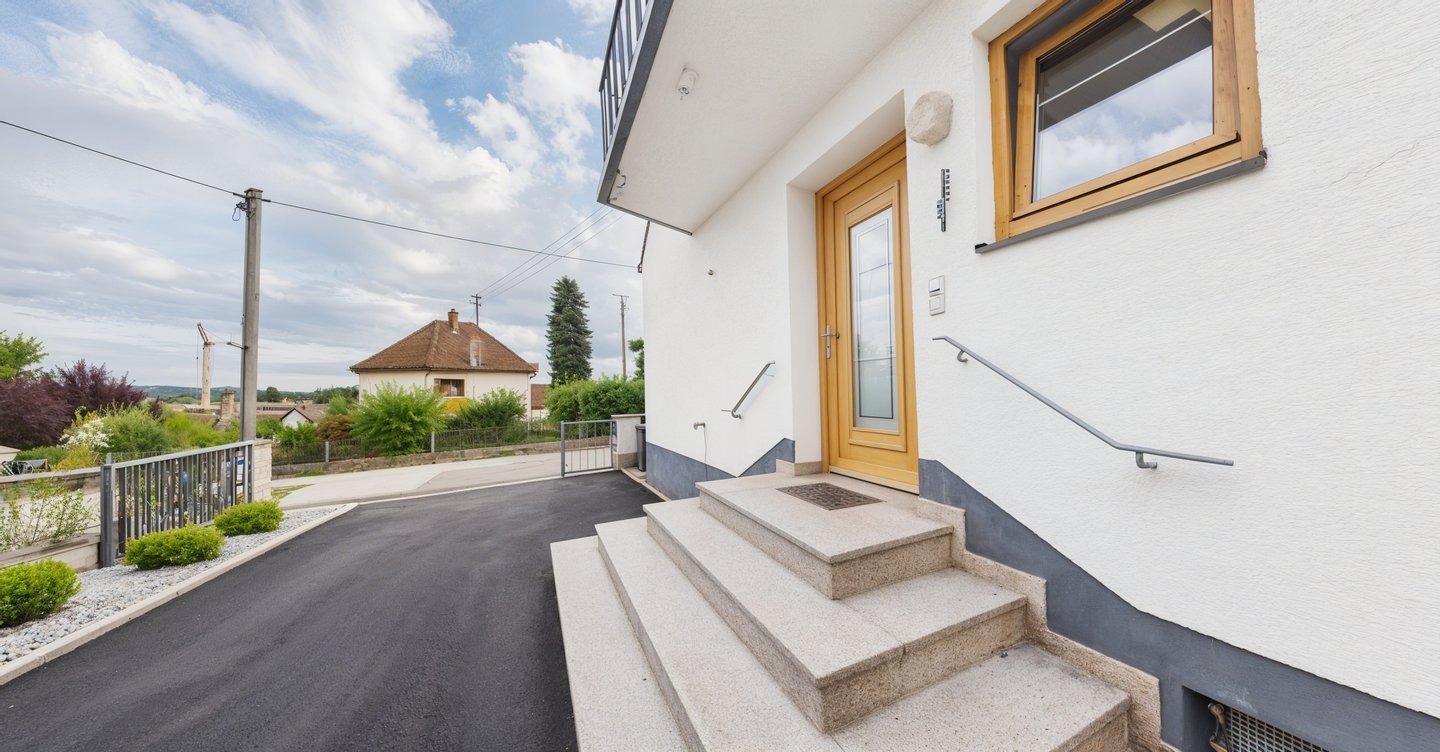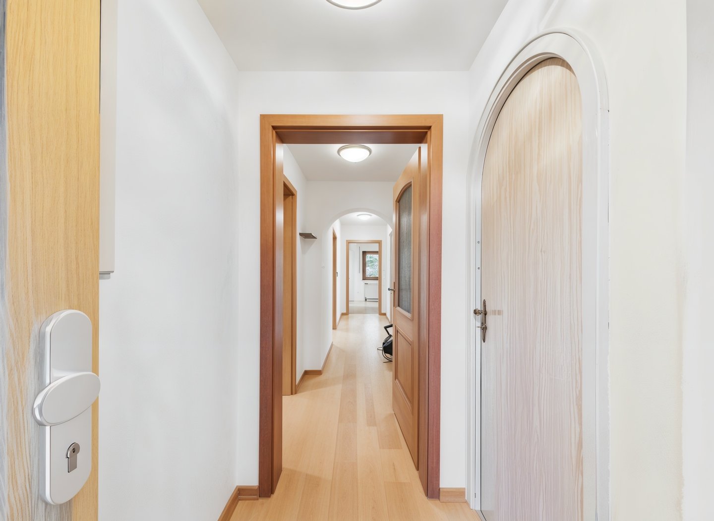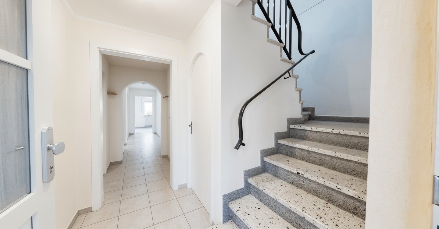 Beim Betreten des Hauses empfängt Sie ein heller Eingangsbereich, der in die jeweiligen Wohneinheiten führt. Jede Einheit verfügt über einen separaten Zugang, was Ihnen maximale Flexibilität bietet – sei es zur Eigennutzung, Vermietung oder als Mehrgenerationenlösung.